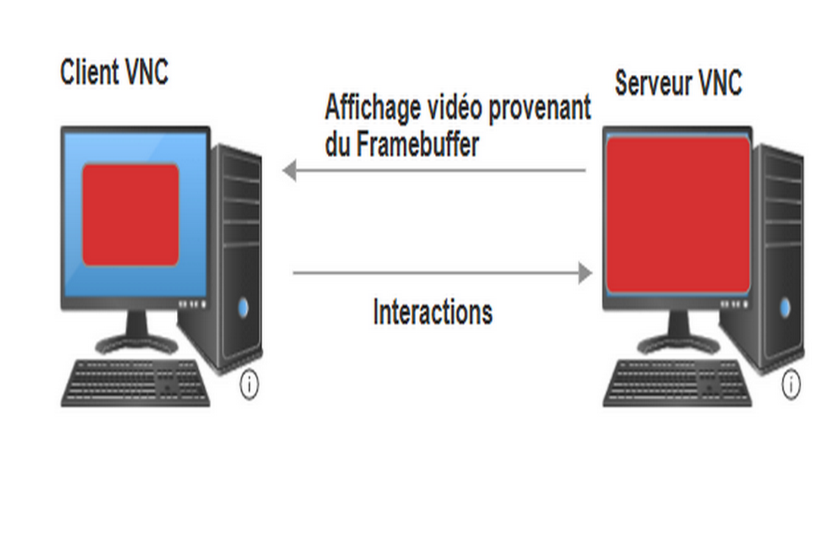 Le serveur VNC capture l’écran de la machine distante (les pixels de l’affichage) et les transmet au client VNC sous forme de paquets de données. Ces paquets représentent l’image de l’écran (encodée et parfois compressée pour économiser de la bande passante).
